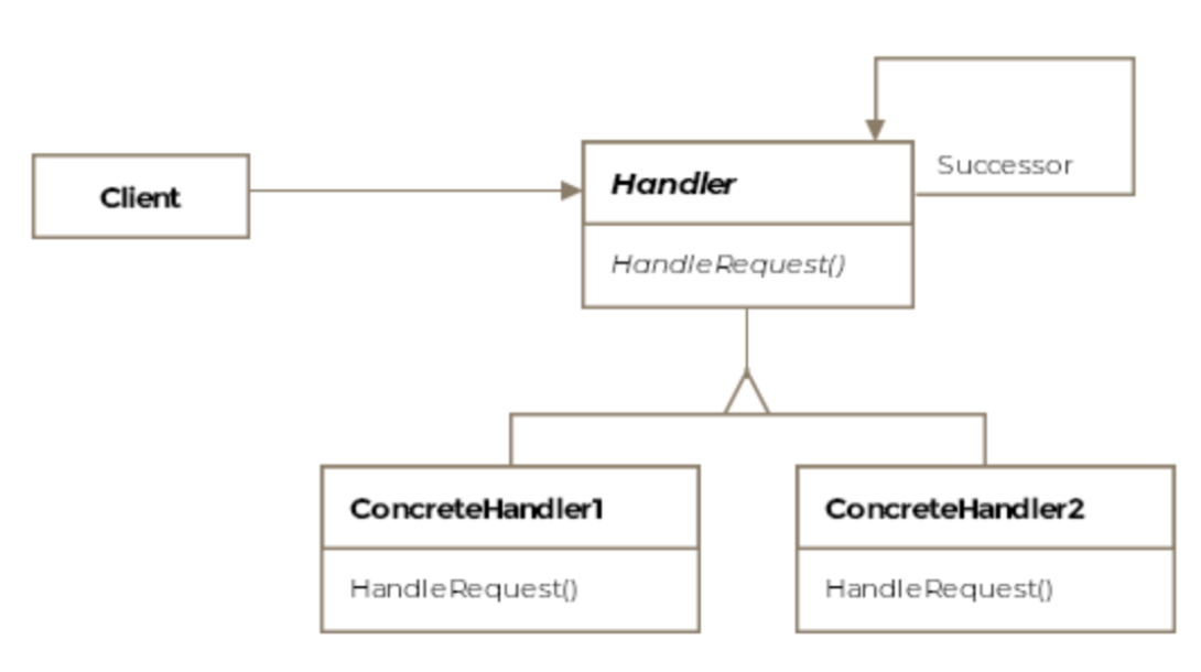 public abstract class Handler { public String name; private Handler next; public Handler(String name) { this.name = name; } public void setNext(Handler next) { this.next = next; } public void handleRequest(int number) { if (canHandle(number)) { print(number); // chain이 연결되어 있으면 다음 처리 객체에 문제 전달 (oddHandler -> evenHandler 순으로 처리) } else if (next != null) { next.handleRequest(number); } else { System.out.println("처리할 수 있는 객체 없음"); } } public void print(int number) { System.out.println(number + ":" + name + "로 처리"); } public abstract boolean canHandle(int number); }public class OddHandler extends Handler { public OddHandler(String name) { super(name); } public boolean canHandle(int number) { return number % 2 != 0; } }public class EvenHandler extends Handler { public EvenHandler(String name) { super(name); } public boolean canHandle(int number) { return number % 2 == 0; } }Handler oddHandler = new OddHandler("홀수"); Handler evenHandler = new EvenHandler("짝수"); // chain 연결 oddHandler -> evenHandler oddHandler.setNext(evenHandler); for (int i = 1; i <= 10; i++) { oddHandler.handleRequest(i); }위에서는 oddHandler 다음으로 evenHandler를 연결하여 chain을 형성하고 oddHandler가 처리할 수 없는 문제면 evenHandler 가 처리하도록 하는 예시입니다.