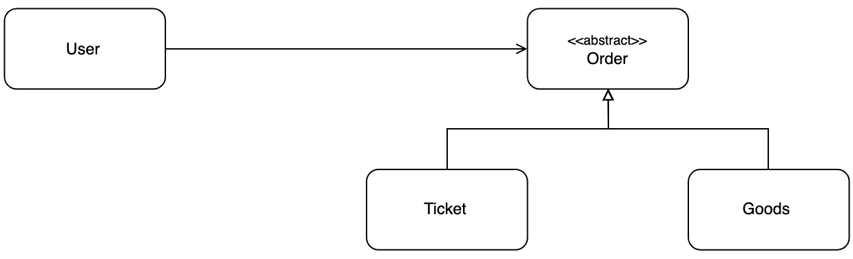 from dataclasses import dataclass class Ticket: def book(self): print('티켓을 예약한다.') @dataclass class User: ticket: Ticket def buy(self): self.ticket.book() ticket = Ticket() user = User(ticket) user.buy() // 티켓을 예약한다. // 주문을 한다.여기서 사용자가 티켓이 아닌 굿즈를 구매하고자 한다면 굿즈에 관련된 코드를 추가하는 것 뿐만 아니라 Ticket 클래스를 의존하고 있던 User 클래스를 수정해야 합니다. 이는 개방 폐쇄 원칙을 위배하게 됩니다. 티켓과 굿즈와 같은 상품 단위로 추상화를 통해 해결할 수 있습니다.