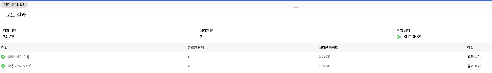 첫 번째 작업은 temp table에 저장한 작업이고 두 번째는 temp table에서 데이터를 읽어와 조회한 작업입니다.