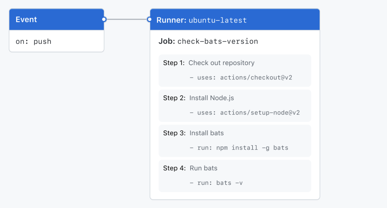 GitHub Actions는 YAML 구문을 사용하여 워크플로를 정의합니다. 각 워크플로는