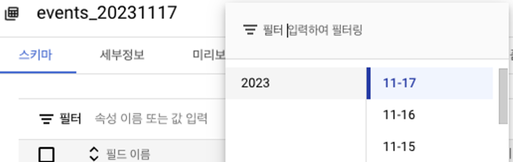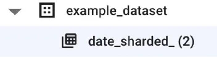 _table_suffix를 활용해 조회할 수도 있습니다.select * from `example_dataset.date_sharded_20210129` union all select * from `example_dataset.date_sharded_20210130` union all select * from `example_dataset.date_sharded_20210131` 또는 select * from `example_dataset.date_sharded_*` _TABLE_SUFFIX between '20210129' and '20210131'파티션 테이블