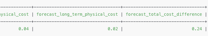 여기서 forecast_total_cost_difference 값이 양수라면 physical storage로 변환했을 때, 비용 절감 효과를 얻을 수 있습니다.