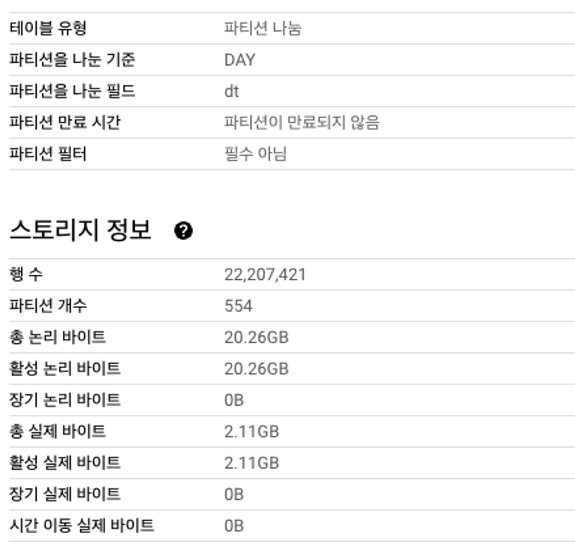 - 빅쿼리 검색 색인 기본 한도: https://cloud.google.com/bigquery/quotas?hl=ko#index_limits