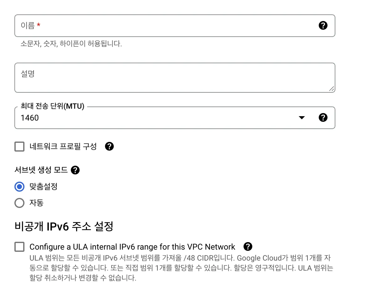 https://cloud.google.com/vpc/docs/create-modify-vpc-networks?hl=ko